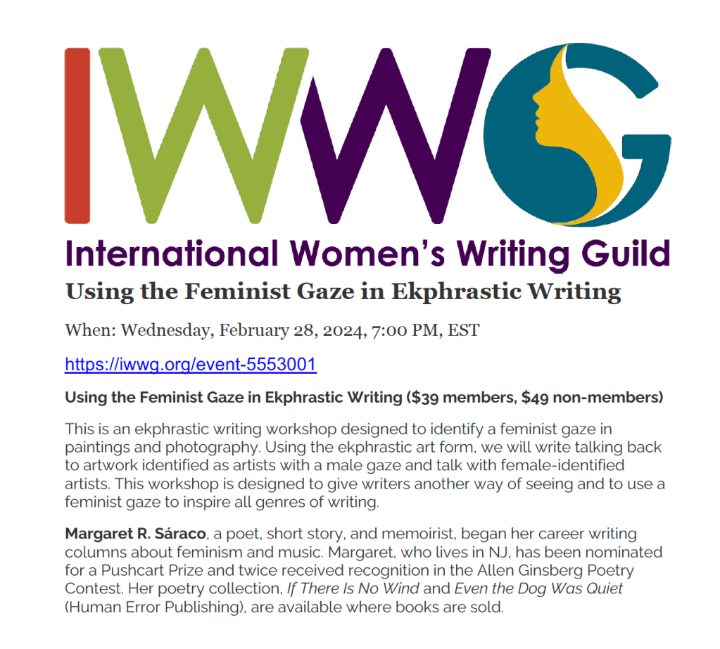 Using the Feminist Gaze in Ekphrastic Writing February 15, 2024msaraco Go to the link below to register for this virtual event. Related